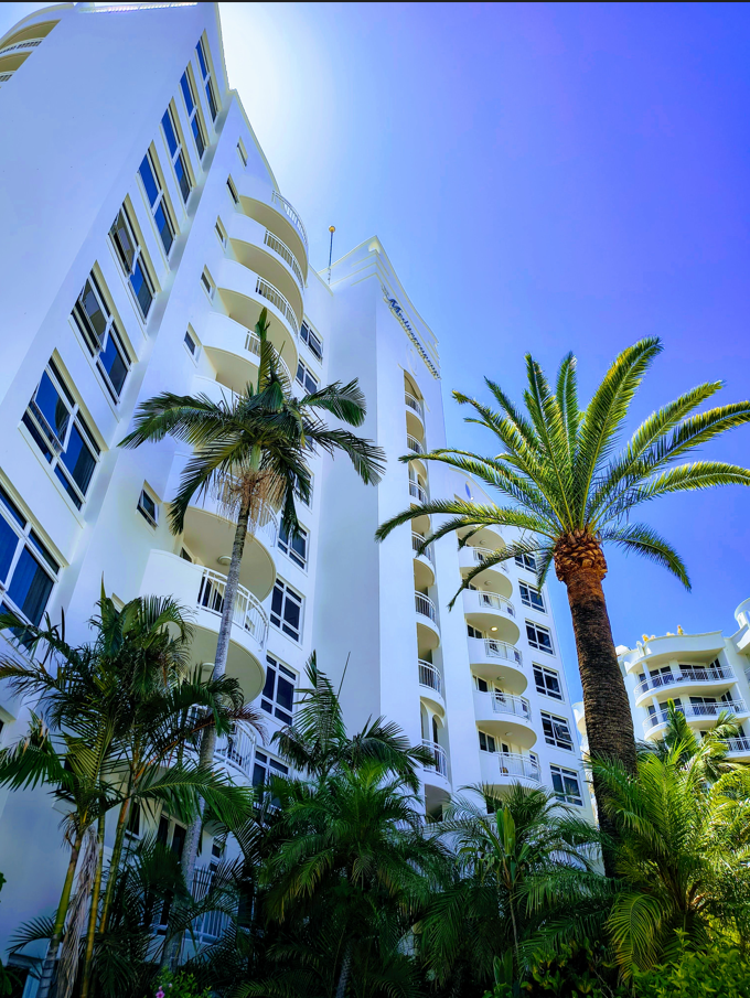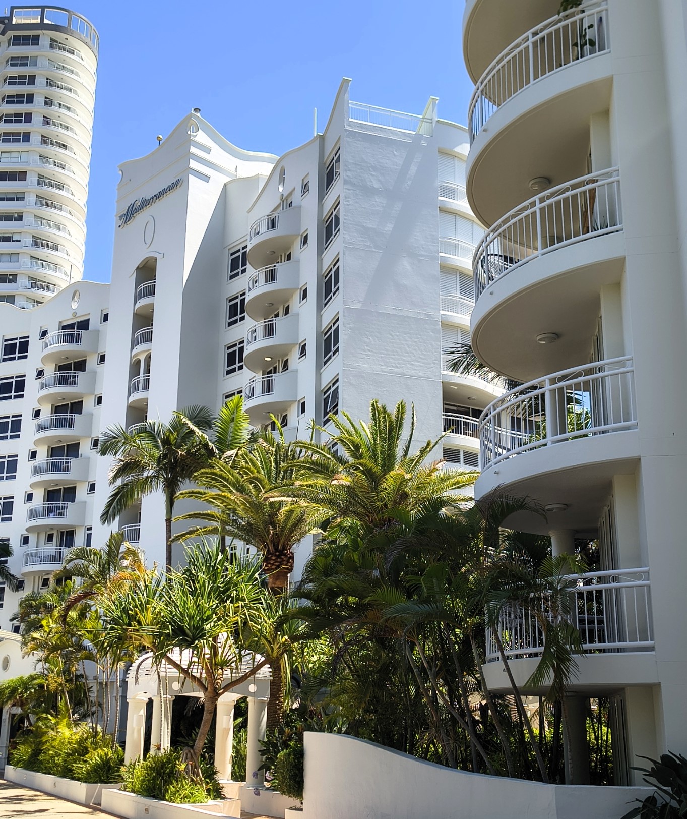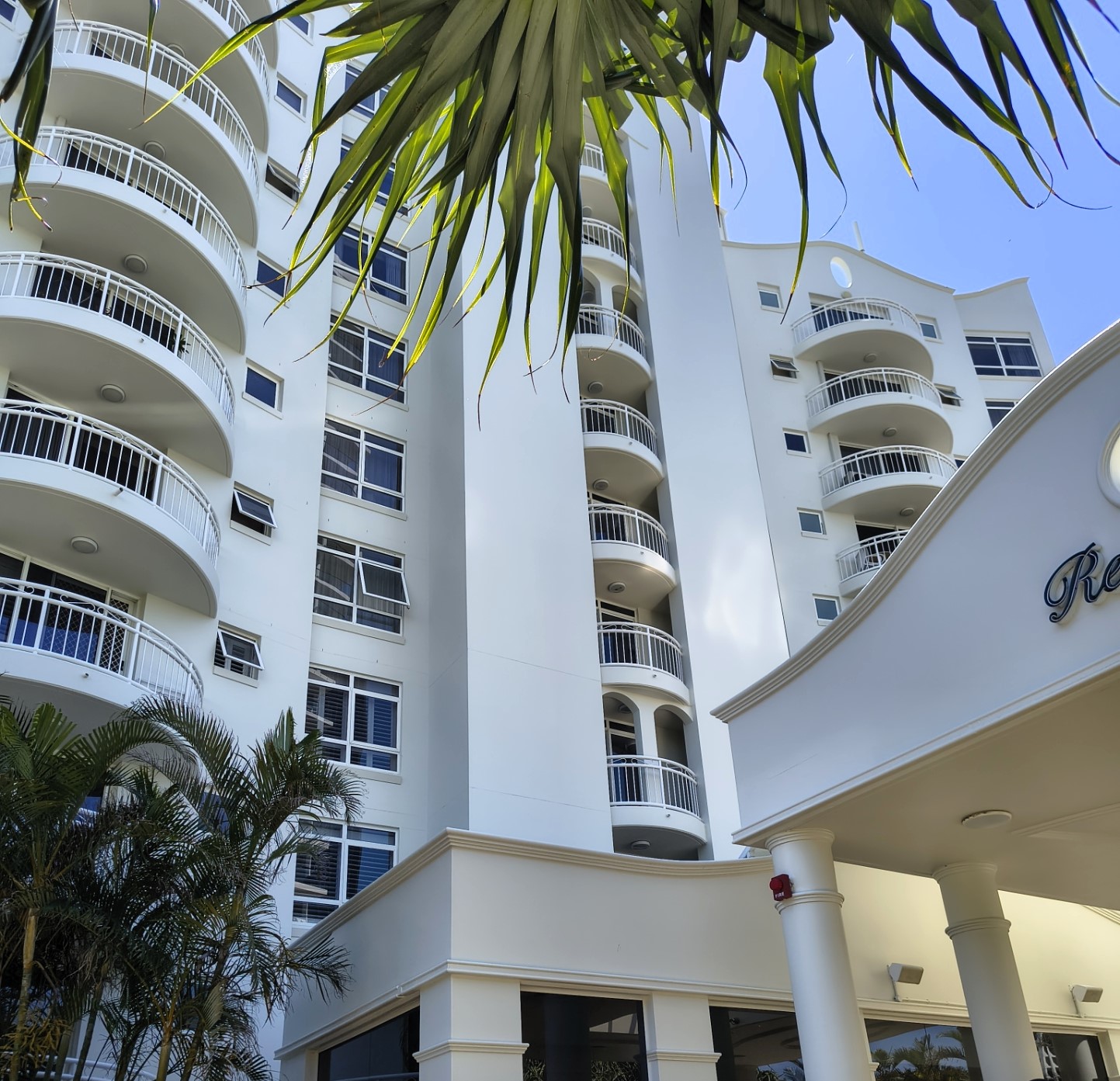 Tender Guide Consultants were re-engaged by the Committee of The Mediterranean Towers to manage the external repainting, balustrade remediation, and associated façade works across this iconic beachfront complex in North Burleigh.